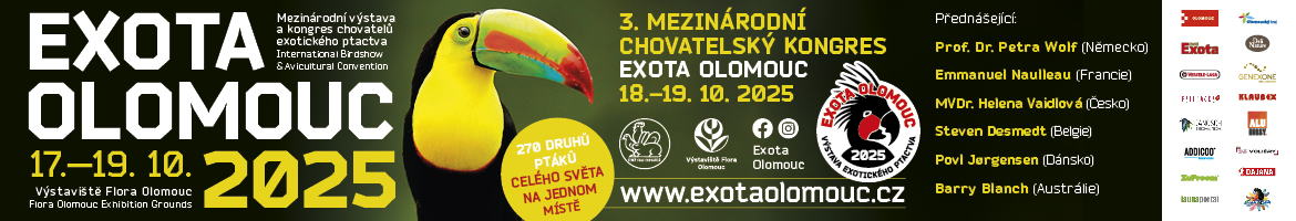 23. klubová výstava zebřiček se koná při výstavě Exota Olomouc 2025. Výstava se...