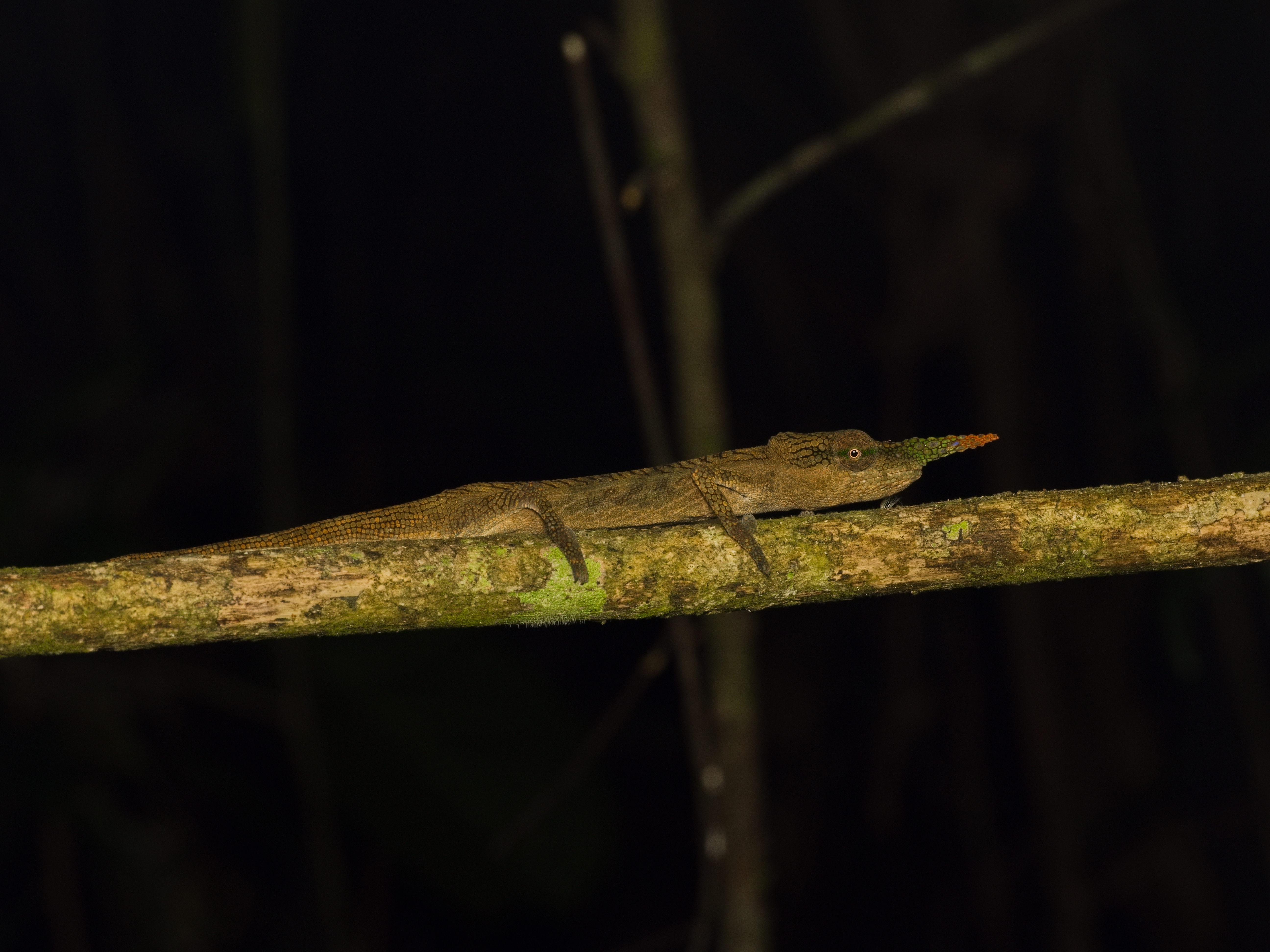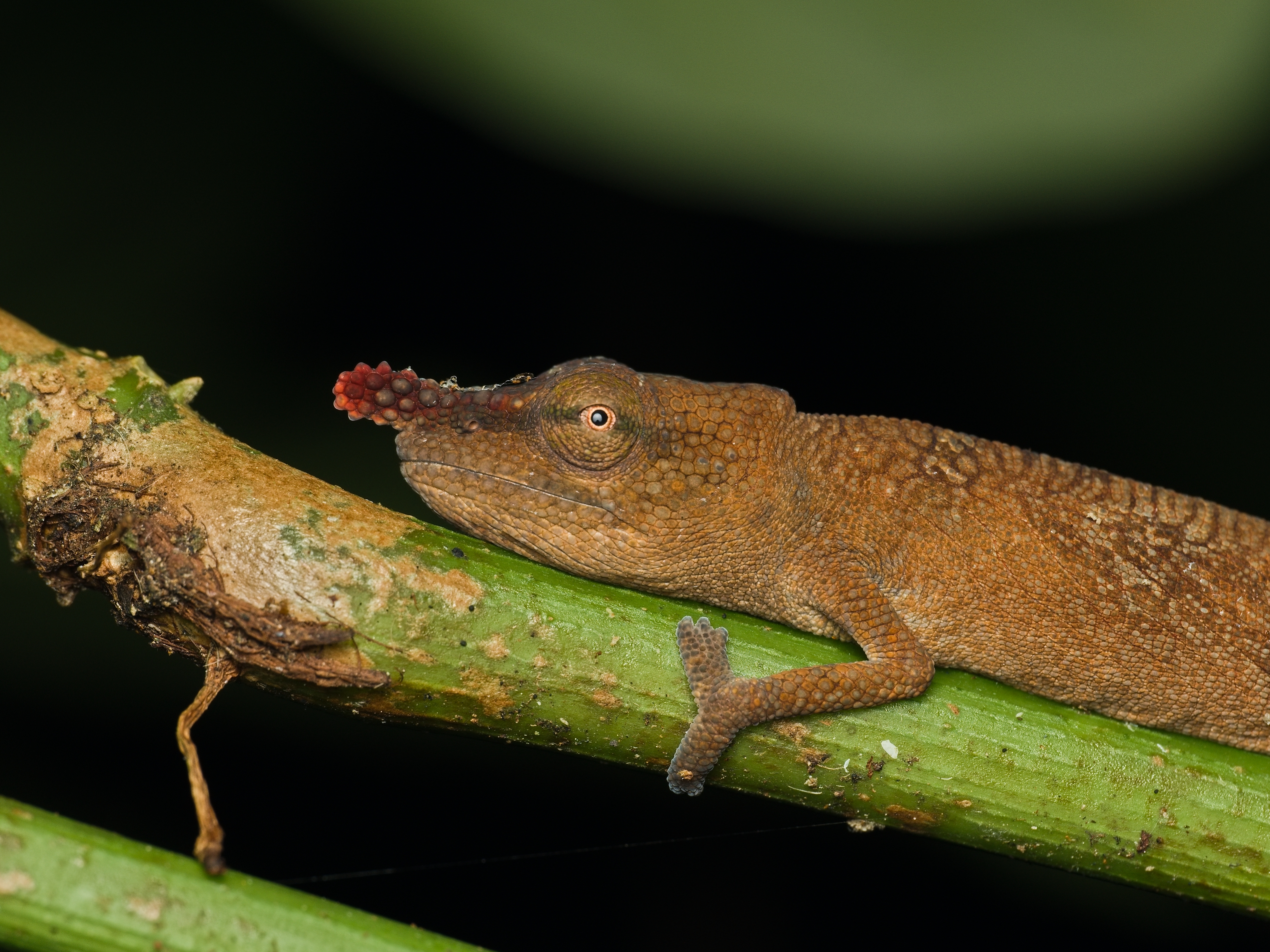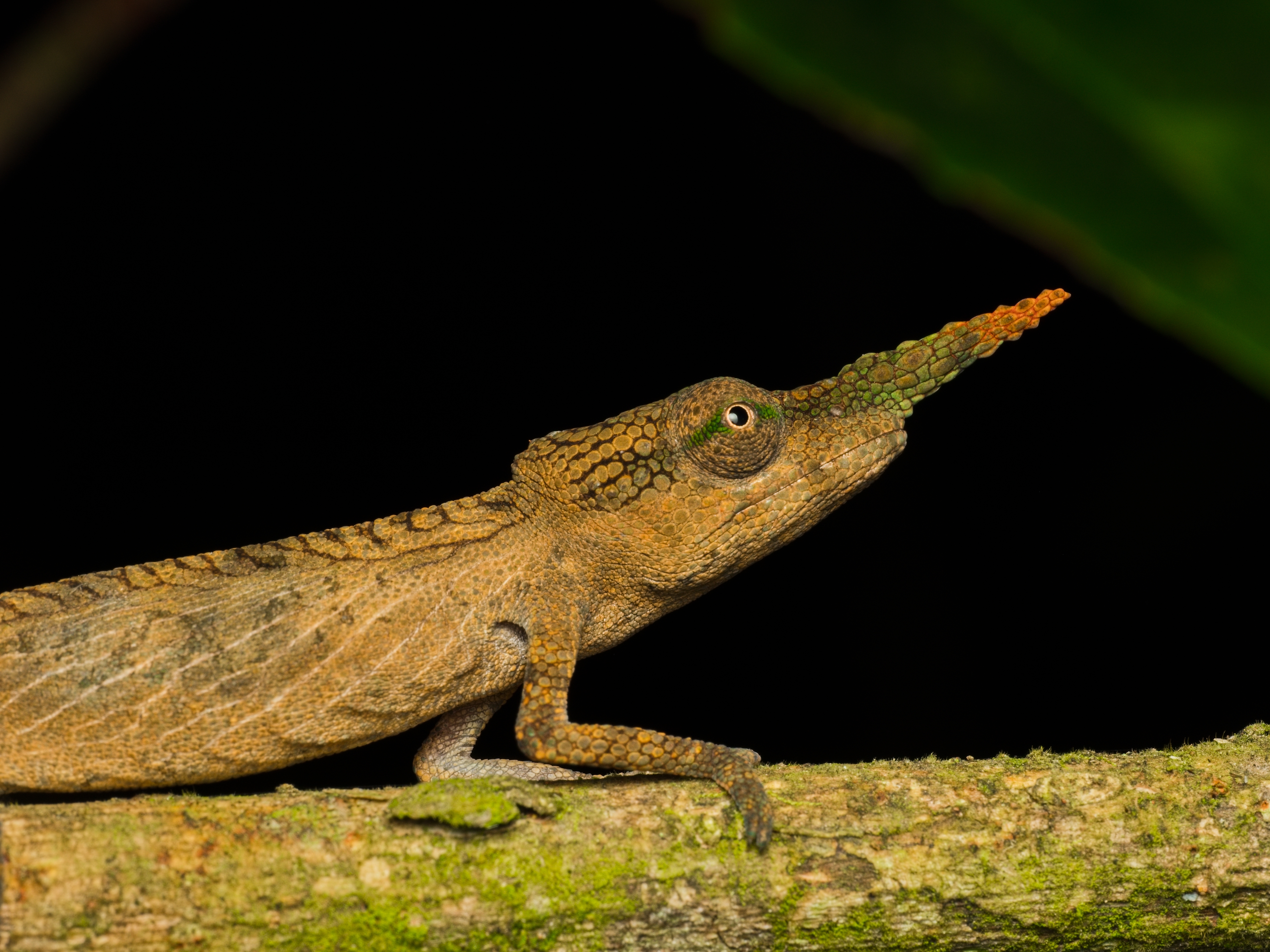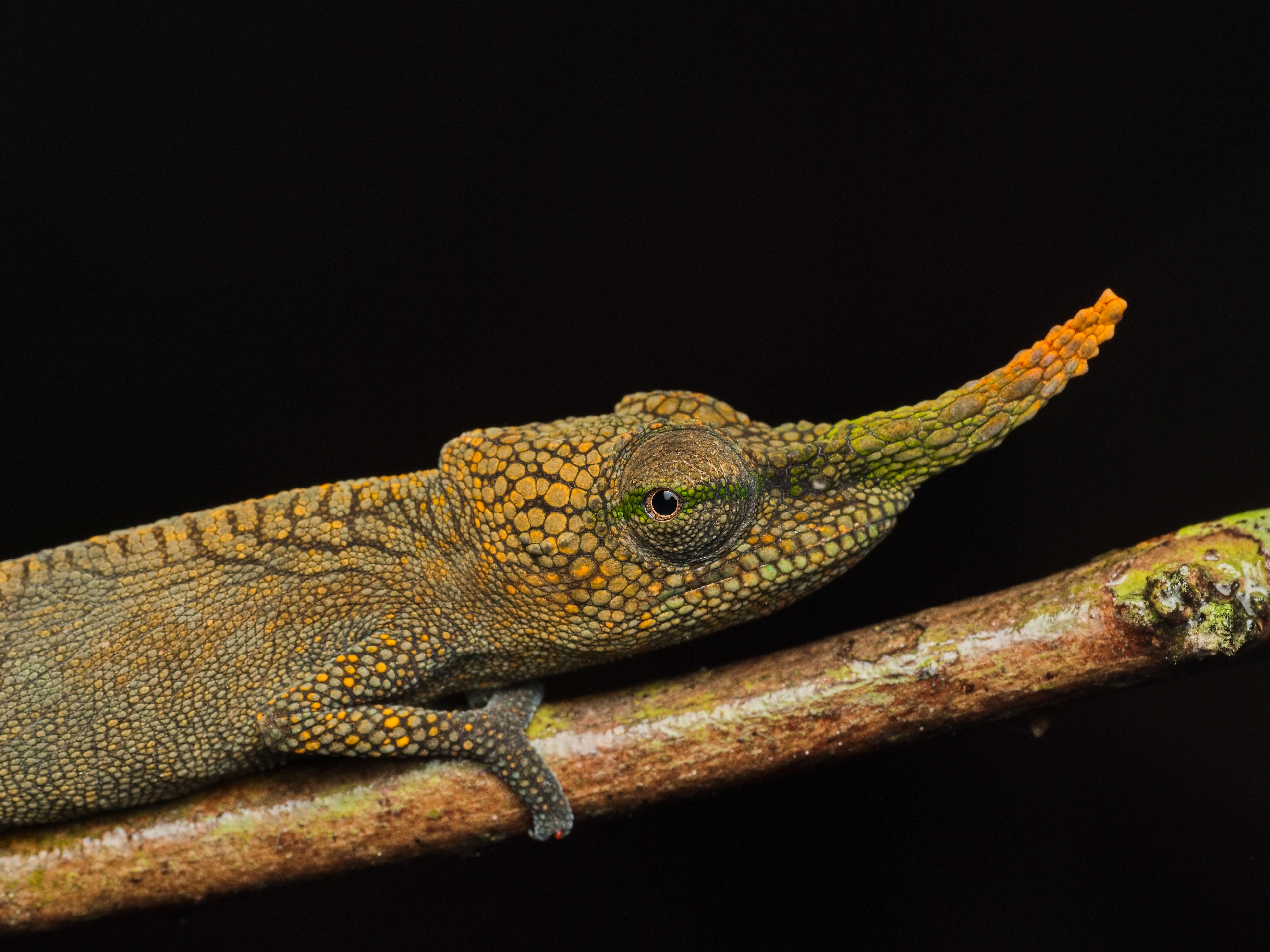 Dospělý samec chameleona Pinocchiova s mimořádně pěkným „nosem“