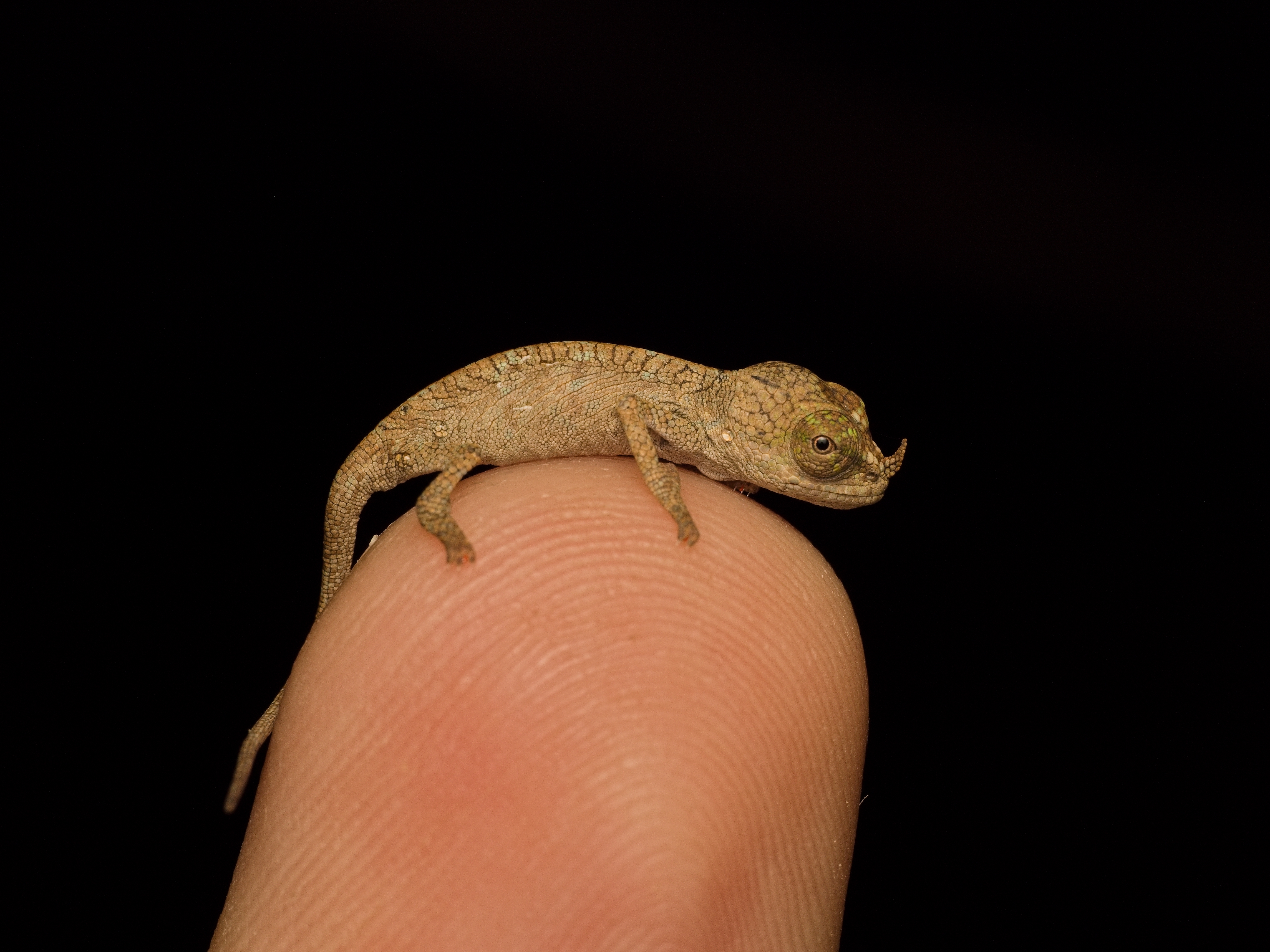 Délka těla dospělého chameleona Pinocchiova nepřesahuje přibližně 11 cm včetně ocasu, takže patří mezi menší druhy chameleonů. Přesto je na první pohled nepřehlédnutelný. Mláďata se z vajec líhnou s příchodem intenzivních sezónních dešťů. Právě ve Vohimaně jsme měli možnost nově popsaný druh pozorovat na vlastní oči během výzkumné výpravy za místními unikátními druhy. V době naší návštěvy zrovna začínalo období dešťů a díky tomu jsme měli možnost vidět i (nejspíš) jen několik dnů stará mláďata velká jako lidský nehet. Zpozorovat takhle malé chameleony ve dne je téměř nadlidský úkol, takže většina našich fotografií pochází z nočních pátrání pomocí čelovek. Výhodou pro pozorovatele je, že v noci chameleoni krásně odráží světlo svítilny a je mnohem snazší je najít.