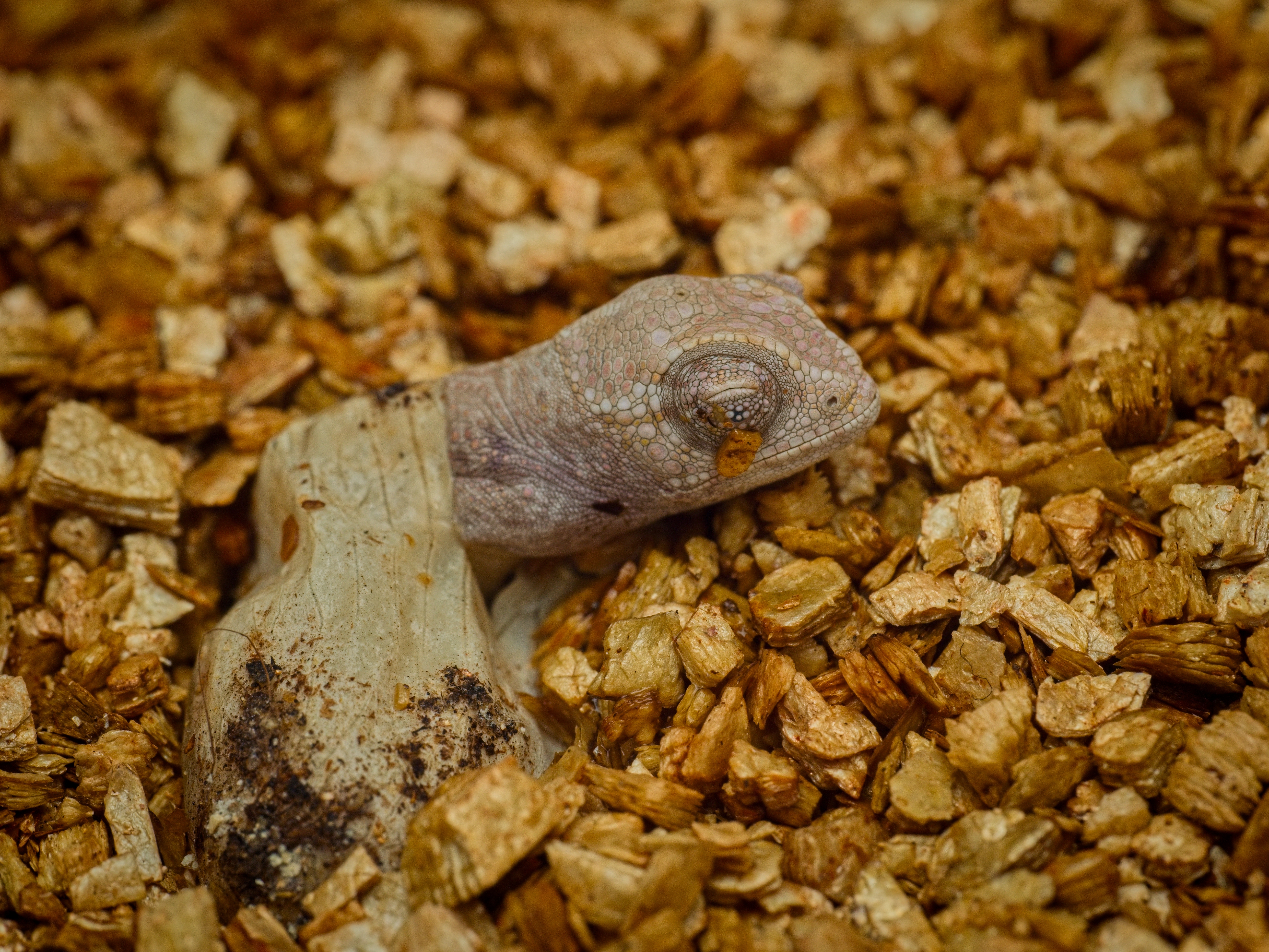Pár dnů staré mládě v odchovném teráriu
