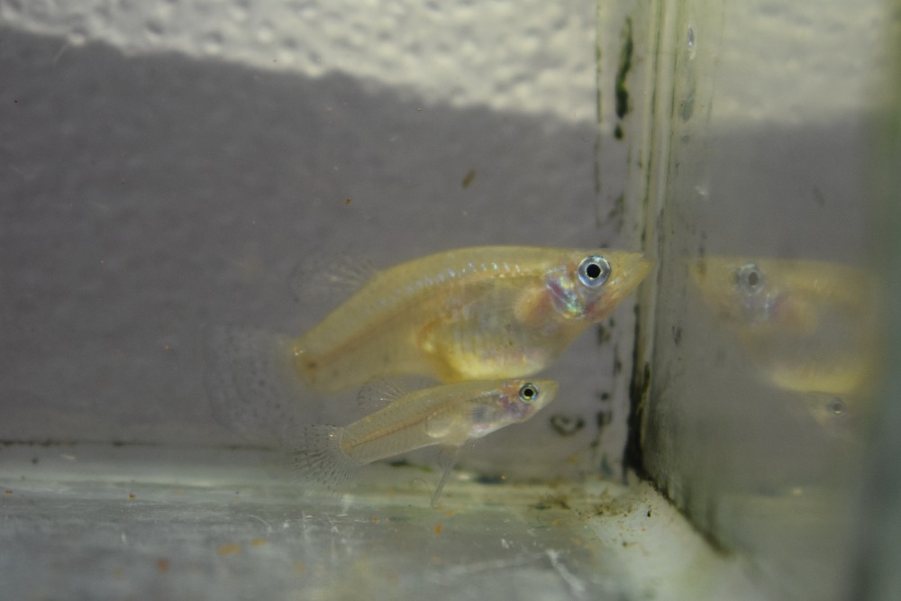 Pro potěr jsem zařídil asi 50l akvárium s pokojovou teplotou, krmil jsem jej mraženou, živou a suchou komerční potravou. Vodu jsem neměnil příliš často, jak je známo, sterilní prostředí většině přírodních živorodek moc nesvědčí, nedaří se jim tam a můžou přijít různé komplikace. Když ryby narostly, rozdělil jsem je do menších skupinek po maximálně 8 ks na 60l akvárium. Zimu přečkaly při teplotě přibližně 20 °C. Zjara po oteplení a ohřátí vody (bohužel jsem si záznamy o teplotě vody, která dala impuls k námluvám, neudělal) se samci začali zajímat o partnerky a proběhlo páření. Přišly i nějaké úhyny samečků v chovných akvárií, nicméně nebyla to nikterak závratná čísla, tak jsem tomu nevěnoval pozornost.