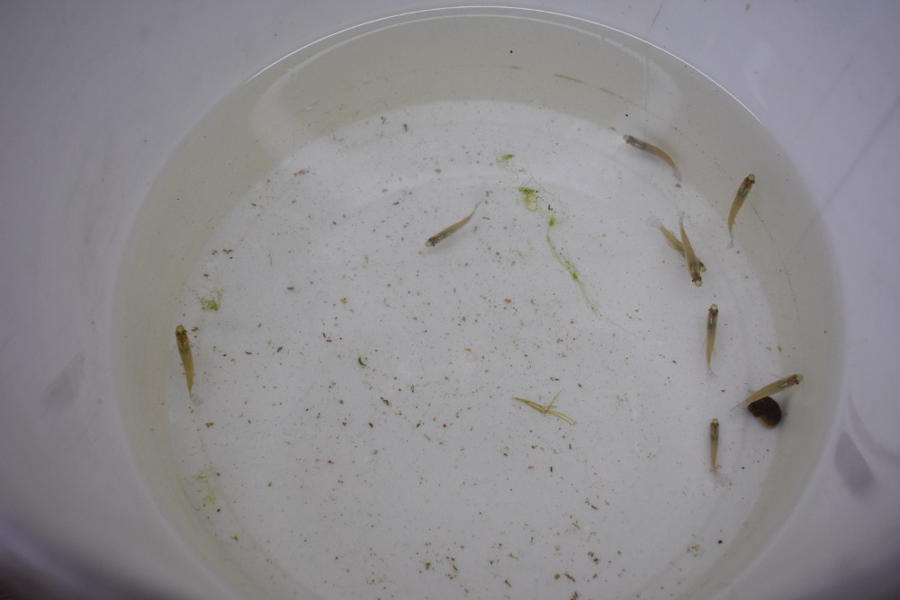 Nicméně, aby vše probíhalo tak, jak má, je třeba v tomto období zvolit i správnou stravu, pro gambusie to není nic jiného než právě černé komáří larvy, které lze od jara do podzimu hojně nalézt v kdejaké nádobě se starou vodou. Larvami sice krmím často, ale i tak je buď doplním něčím jiným, nebo vynechám a předložím mražený cyklop, živé dafnie, ale i pro mě velmi oblíbenou líhnutou žábronožku solnou. Dá se s nadsázkou říci, že tyhle ryby krmím od jara do podzimu především živou potravou, doplněnou o něco mraženého, a zatím můžu říci, že se mi to osvědčilo.