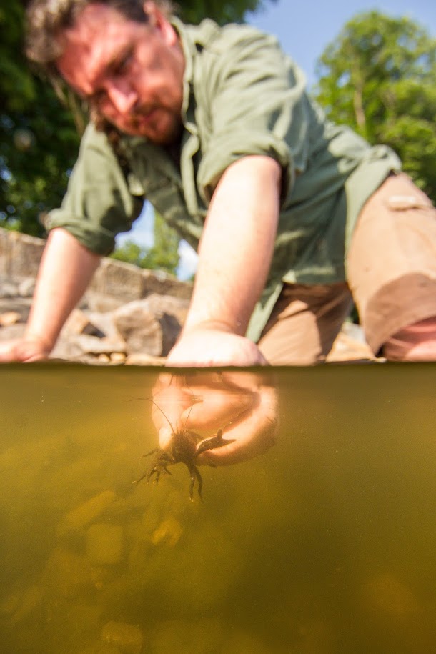 Ruční odchyt severoamerického raka pruhovaného (Faxonius limosus) • Foto: Miloslav Petrtýl
