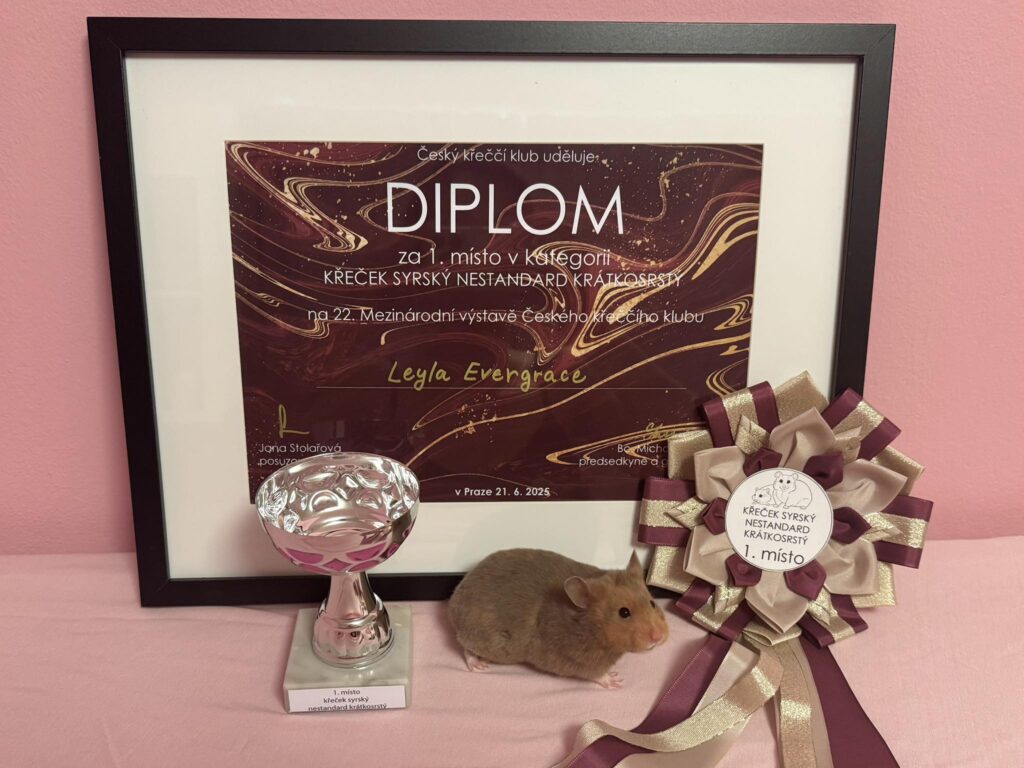 1. místo v kategorii "Křeček syrský nestandard krátkosrstý" vyhrála samička Leyla Evergrace • Foto: Patricie Maňásková