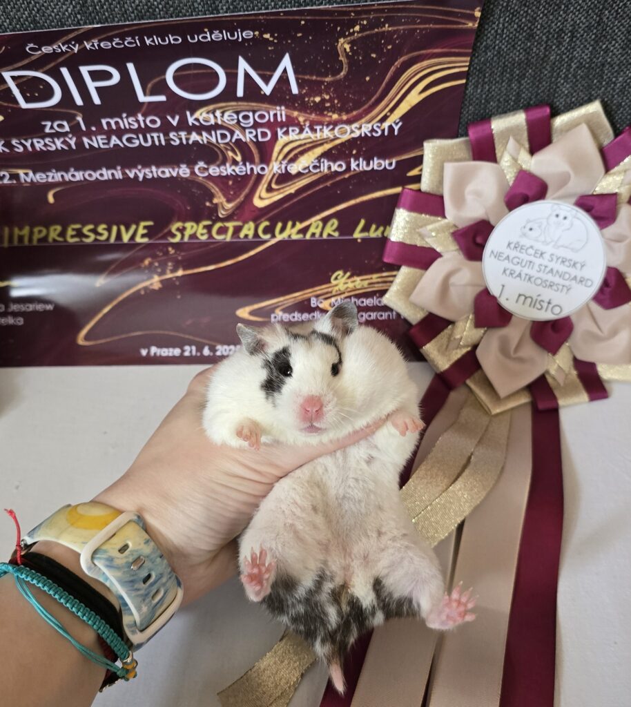 1. místo v kategorii "Křeček syrský neaguti standard krátkosrstý" vyhrála samička Impressive Spectacular Luna • Foto: Bc. Michaela Lehotová
