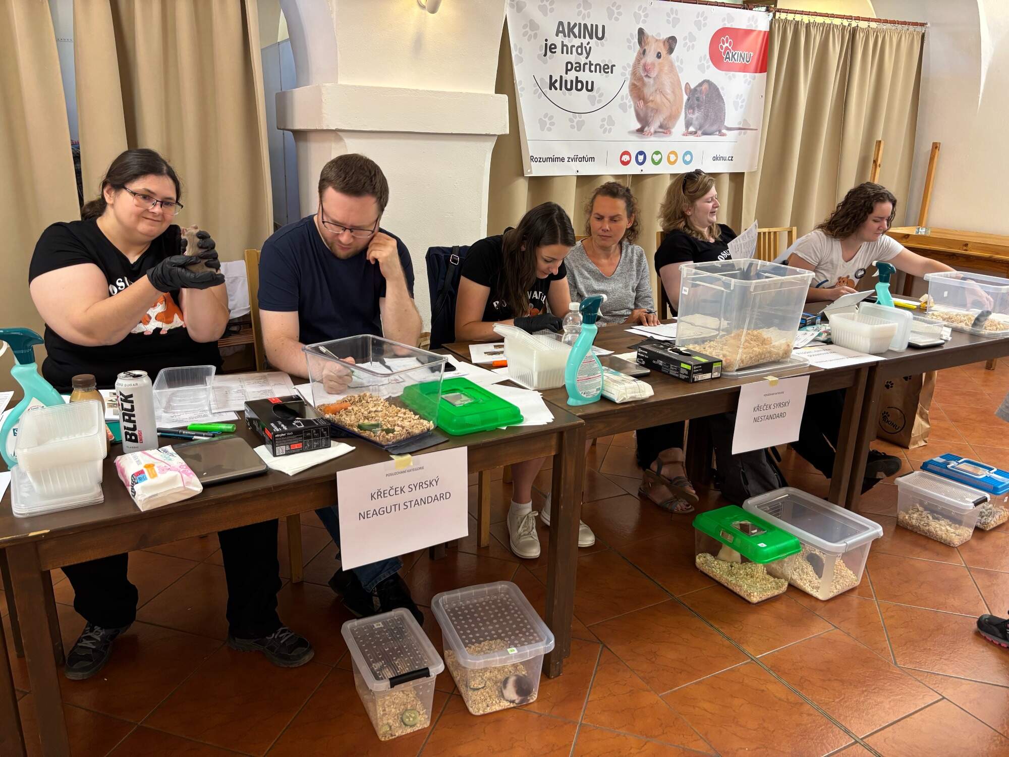 Důkladná prohlídka křečků posuzovateli výstavy • Foto: Ing. Adéla Schnürchová