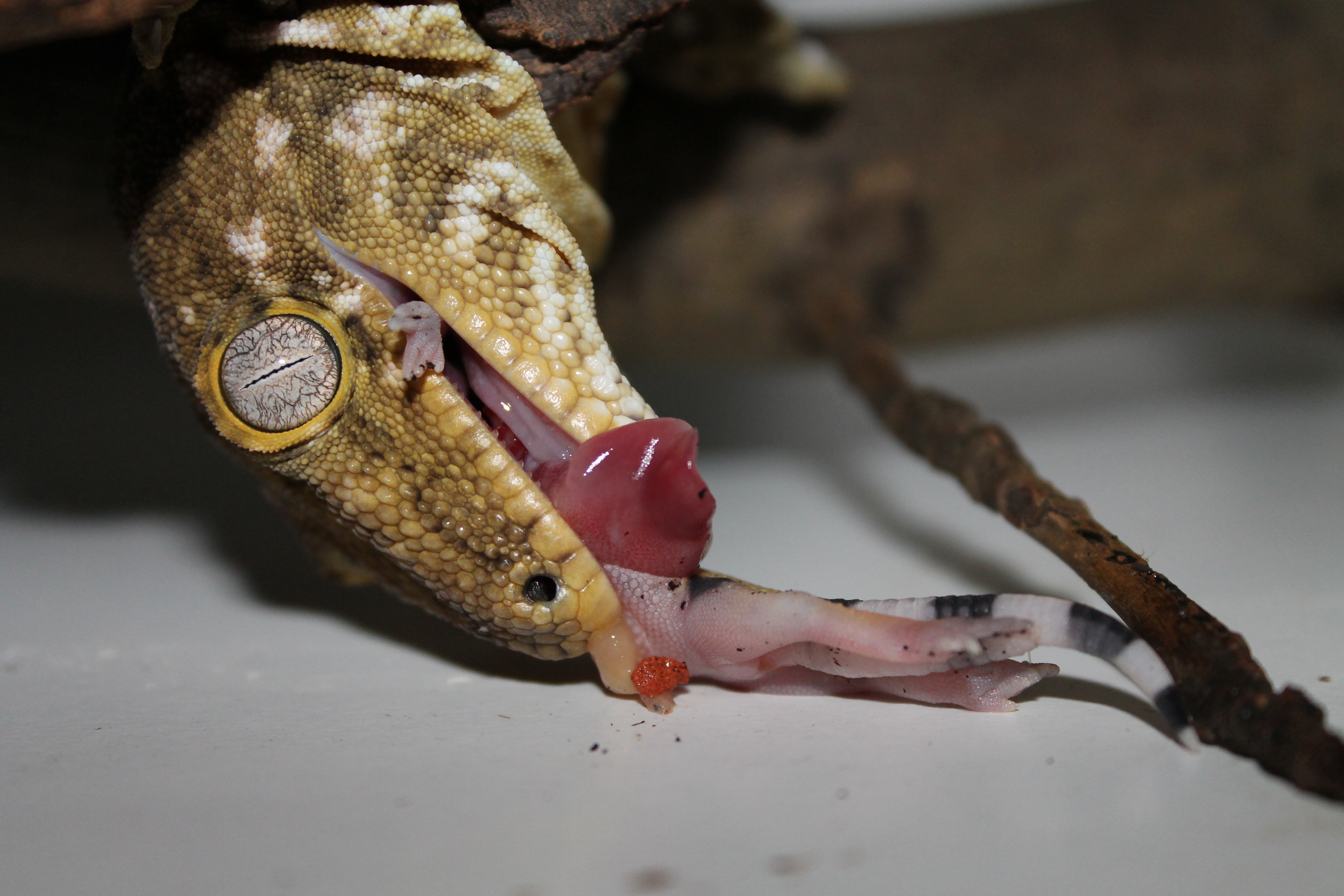 Velmi rádi si gekoni vezmou nabídnuté drobné gekony či mláďata andulek nebo zebřiček. Drobní obratlovci jsou totiž častou potravou pagekonů ve volné přírodě. V Chovu by to měla být pouze občasná složka potravy. Aby pagekon netrpěl nedostatkem vitamínů, obaluji hmyz ve směsi multivitamínu značky Reptivit. Jednou za 14 dní podávám multivitamin s přídavkem vitamínu D3.